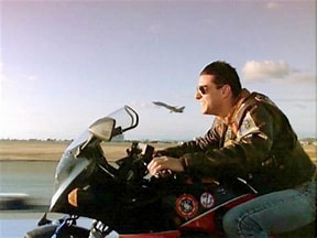 また、「トップガン」(1986年)にも非常に有名なバイクシーンがあります!